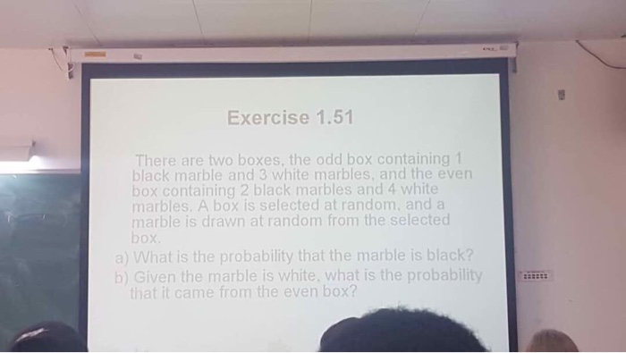 1 5 1 there are two boxes the odd box containing 1 black marble and 3 white marbles and the even box containing 2 black marbles and 4 white marbles.
